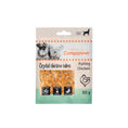 Stykkerne er lavet af rent kyllingekød, som er blevet skåret ud i nogle små stykker, der er gode til hvalpe eller småt spisende hunde. Companion Chicken Cubes indeholder hverken gluten, sukker eller kunstige tilsætningsstoffer.