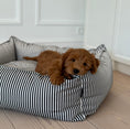 Med sit stribede beige/sorte eller multifarvede design passer Anna hundekurven ind i de fleste hjem. Den kombinerer funktionalitet med æstetik, hvilket gør den til et godt valg for stilbevidste hundeejere.