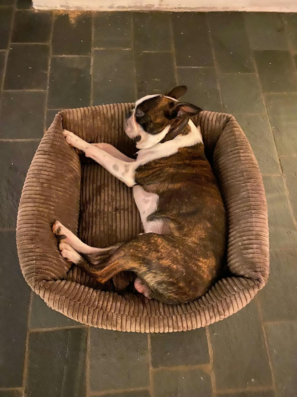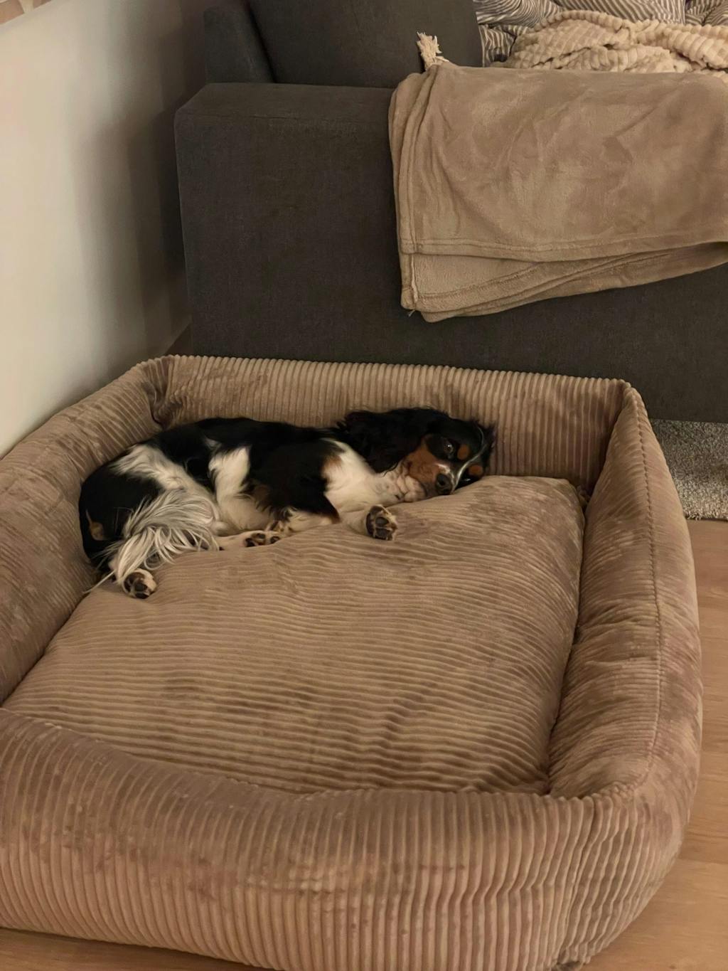 Bjørk hundekurv i mørk brun bred fløjl